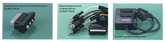 Особенно если в доме только один аппарат имеет SCART, а другой (другие) — нет. Решение старо как мир — переходник или кабель-переходник. Первые представляют собой разъемы SCART с вмонтированными разъемами типа RCA или S-video. Для них подойдет кабель «тюльпан-тюльпан» или S-video-S-video. Переходники бывают одно- и двунаправленные, моно или стерео, с переключателями и без них.Разнообразие кабелей-переходников еще больше. Самые распространенные — SCART-RCA (или «скарт»-тюльпан). Среди них также одно и двунаправленные, стерео, моно. с дополнительными разъемами для управления переключением. В том случае, когда необходимо к одному устройству подсоединить два, можно использовать SCART-разветвитель на два или три направления.