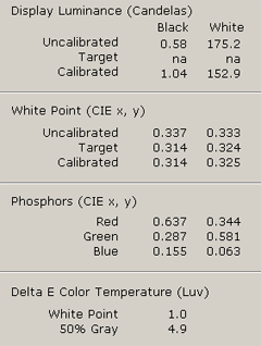 При весьма невысокой яркости белого в 175Кд обнаруживается вполне нормальный черный цвет, а контраст составляет 300:1 (помните официальную цифру в аж 700:1?). После калибровки данные падают, но это уже традиционный эффект. Заодно вся палитра слегка высветляется.