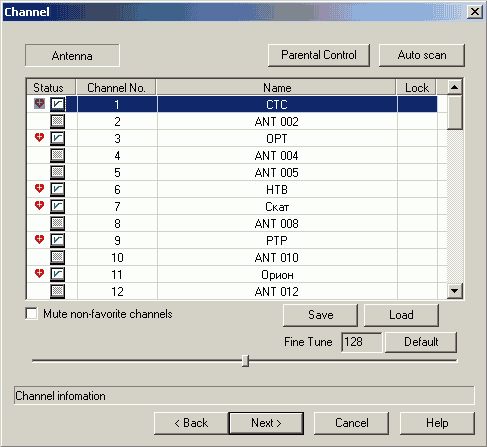 Выбрав SECAM_D и Line-In (воздержусь от комментариев в адрес такой организации вывода звука, но напомню, что с учетом питания тюнер подключается к компьютеру тремя (!) кабелями)