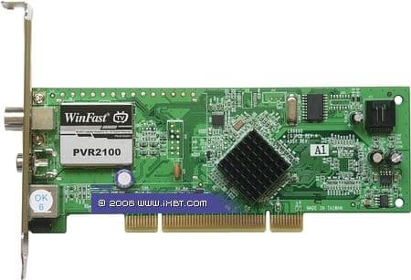 Leadtek WinFast PVR2100 — аналоговый TV-тюнер с интерфейсом PCI и поддержкой аппаратного сжатия в MPEG2. Селектор Xceive XC2028, 10-битный одночиповый АЦП+MPEG1/2-кодировщик Conexant CX23418-22ZZ.