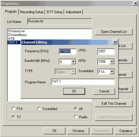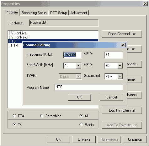 Единственное заметное отличие от программ для работы с аналоговыми тюнерами заключается в индикации уровня сигнала и уровня ошибок.