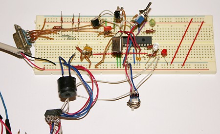 Выбрали мы PIC16F876A от Microchip Technology. С одной стороны, функциональность этого микроконтроллера в несколько раз превосходит необходимую для управления ШД. В принципе, добавив ОУ с переменным коэффициентом усиления и, возможно, транслятор интерфейса RS232, можно собрать всю систему сбора и предварительной обработки данных без блока АЦП E-140 (упростив ее, но и немного потеряв при этом в точности). С другой стороны, запас карман не тянет, а экономия нескольких десятков рублей при единичном производстве никакого значения не имеет. Программа для микроконтроллера писалась в среде MPLAB IDE, там же она отлаживалась с использованием встроенного эмулятора. Текст программы тут. Мы прошивали PIC16F876A с помощью простого низковольтного программатора, собранного на макетной плате. Схема тут. На этой же плате находились все остальные элементы, необходимые для проверки работоспособности схемы.