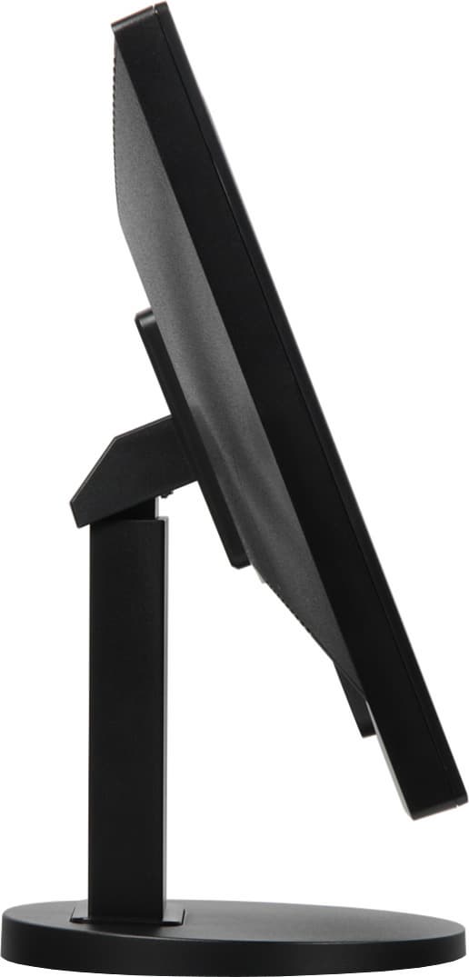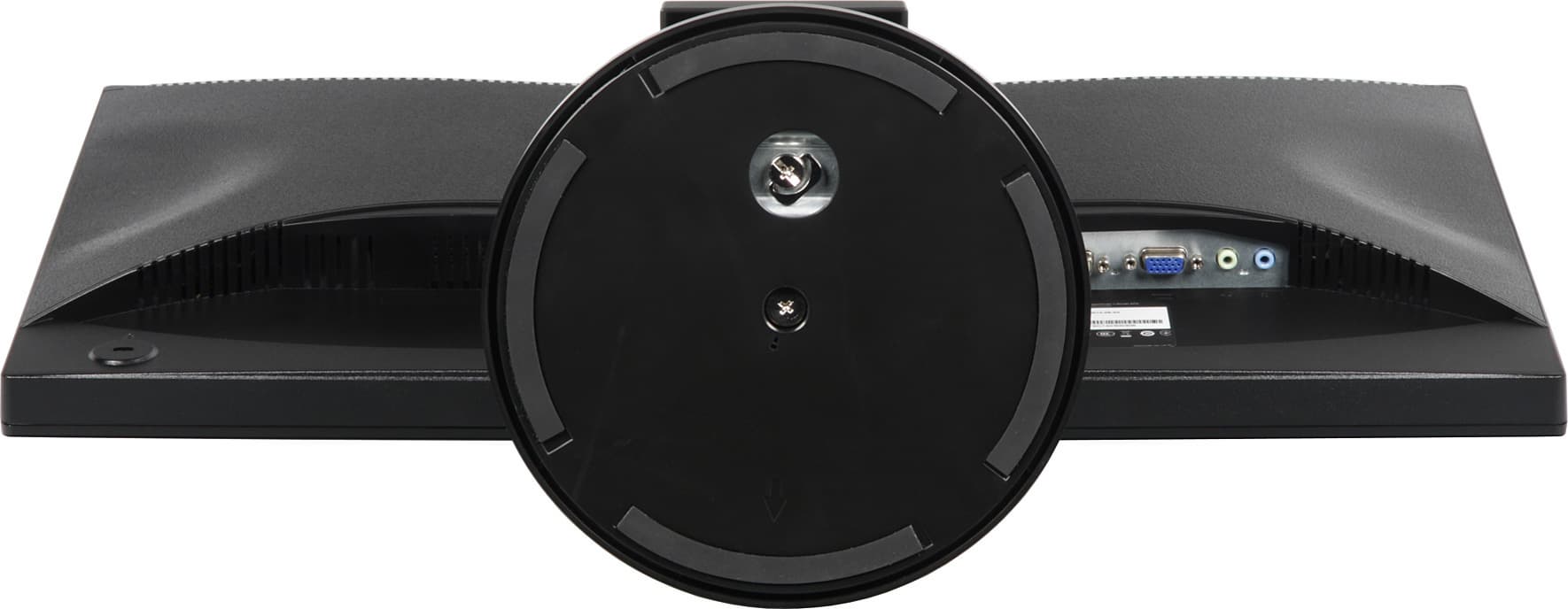 Основание подставки относительно большое по площади, но оно сверху в основном плоское и почти горизонтальное, что повышает эффективность использования рабочей площади стола. Монитор стоит на подставке устойчиво. Конструкция подставки достаточно жесткая, так как несущие элементы подставки изготовлены из толстой штампованной стали. Резиновые прокладки по периметру диска из пластика с небольшим коэффициентом трения, закрепленного центральным винтом снизу на основании подставки, защищают поверхность стола от царапин и предотвращают непредвиденное перемещение монитора на гладких поверхностях.