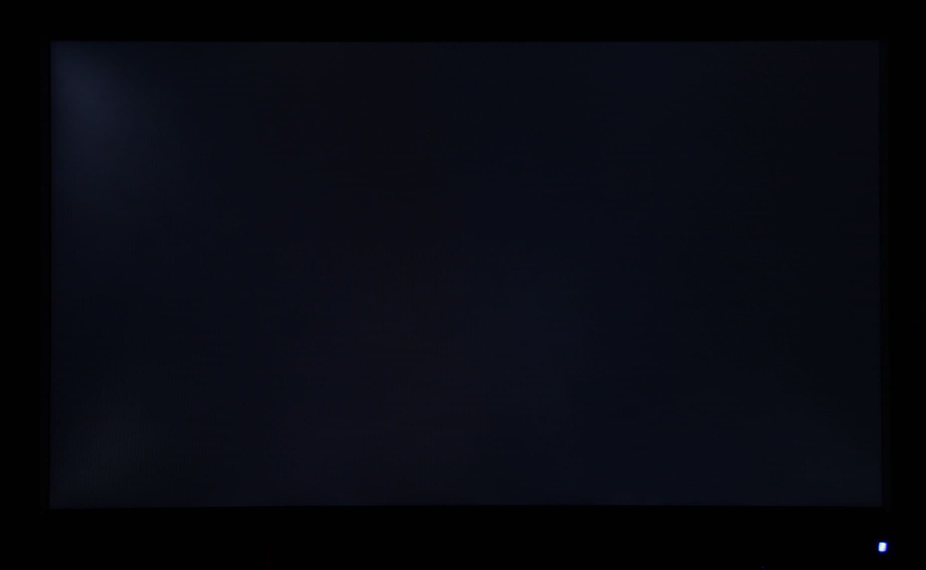 Равномерность параметров хорошая. Контрастность высокая, что является отличительным признаком большинства матриц типа *VA. Фотография ниже дает представление о распределении яркости черного поля по площади экрана: