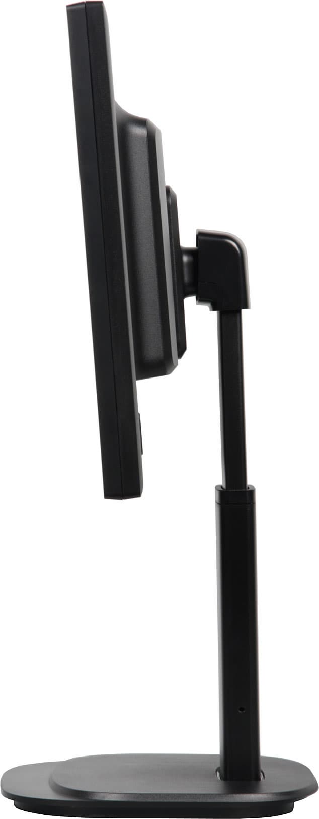За верхней вентиляционной решеткой на задней панели можно разглядеть небольшие овальные громкоговорители в индивидуальных корпусах. Стойка подставки телескопическая, поэтому экран можно установить на нужную высоту. К монитору прилагается проволочная чека, вставив ее в соответствующее отверстие, можно зафиксировать стойку в положении минимальной высоты, что удобно, например, при упаковке или транспортировке монитора. Верхний шарнир допускает немного наклонять блок экрана вперед от вертикального положения, больше — назад, и переворачивать экран в портретную ориентацию по часовой стрелке.