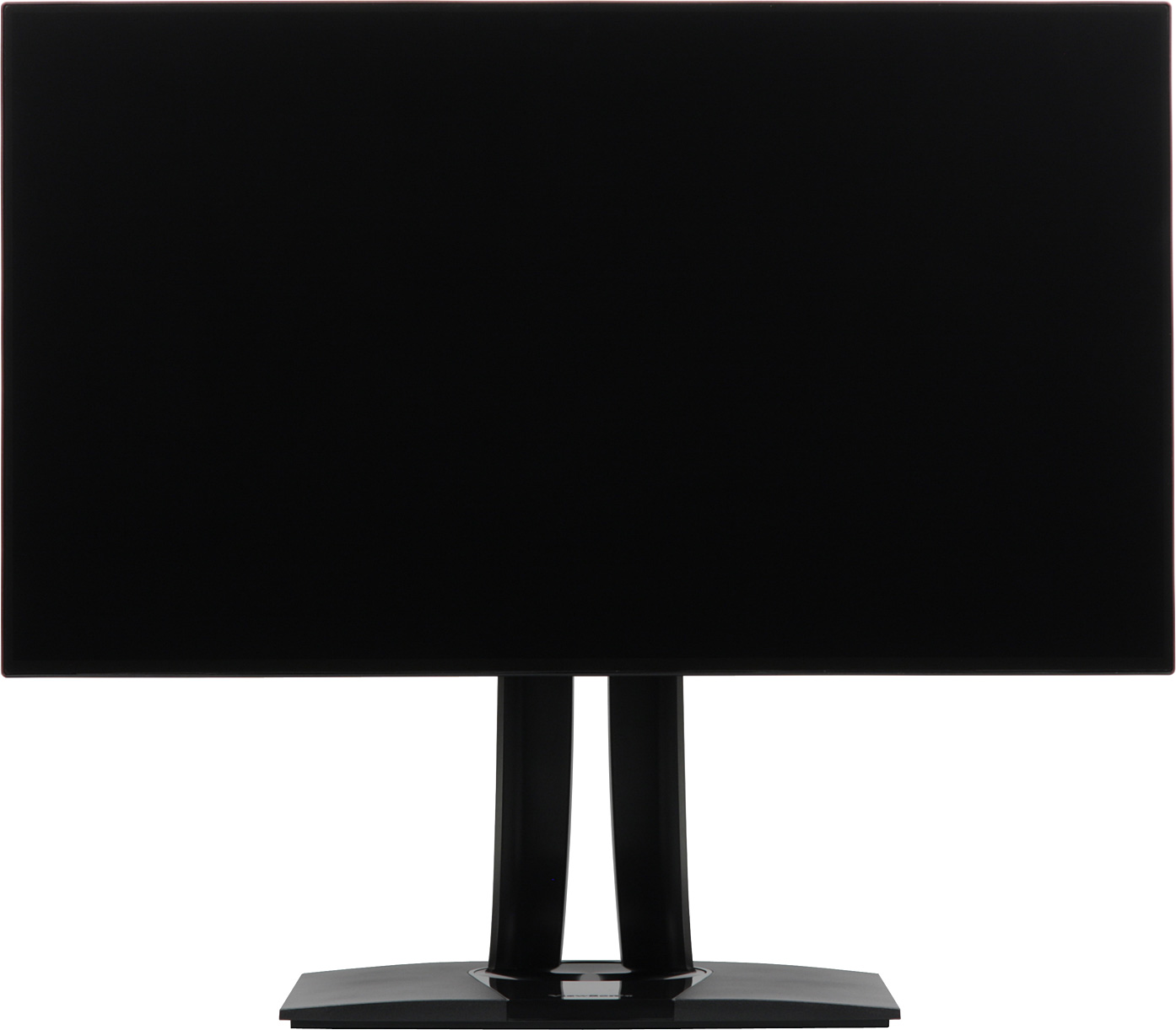 Фронтальная поверхность экрана выглядит как монолитная черная матовая поверхность (зеркальность выражена слабо), ограниченная по периметру узкой окантовкой из пластика. Выведя изображение на экран, можно увидеть, что на самом деле между внешними границами экрана и собственно областью отображения есть поля сверху и с боков шириной порядка 5-6 мм и 9,5 мм снизу. Дизайн монитора нам понравился, вроде бы ничего особенного, но экран без рамки и изящные лаконичные линии подставки и блока экрана в совокупности производят очень хорошее впечатление. Пластиковые кожухи блока экрана и подставки изготовлены из пластика в основном без покрытия с черной матовой поверхностью. Исключения два — зеркально-гладкий клин сверху на основании, а кожух сзади на стойке имеет темно-серое серебристое покрытие.