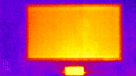 Нагрев монитора можно оценить по приведенным снимкам с ИК-камеры, полученным после долговременной работы монитора на максимальной яркости в помещении с температурой примерно 24 °С (ближе к белому — выше температура):