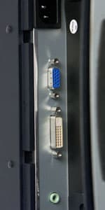 На задней стенке мы находим аналоговый D-Sub и цифровой DVI-разъемы, аудиовход и разъем питания. Отдельного выключателя питания нет.