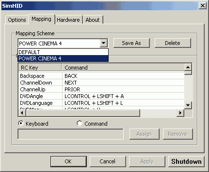 Особенностью работы пульта является настраиваемая эмуляция клавиатурных сочетаний в резидентной программе, что позволяет использовать его как с PowerCinema, так и с другими программами вплоть до интерфейса Windows XP MCE 2005.