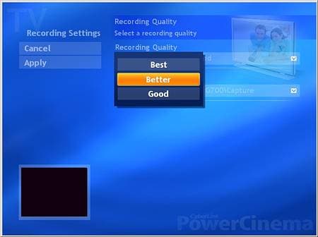 Запись при работе с аналоговым телевидением возможна только в формате MPEG2, для чего используются три профиля — Good (352×576, 4000 Кбит/с), Better (352×576, 6000 Кбит/с) и Best (720x×576, 8000 Кбит/с).