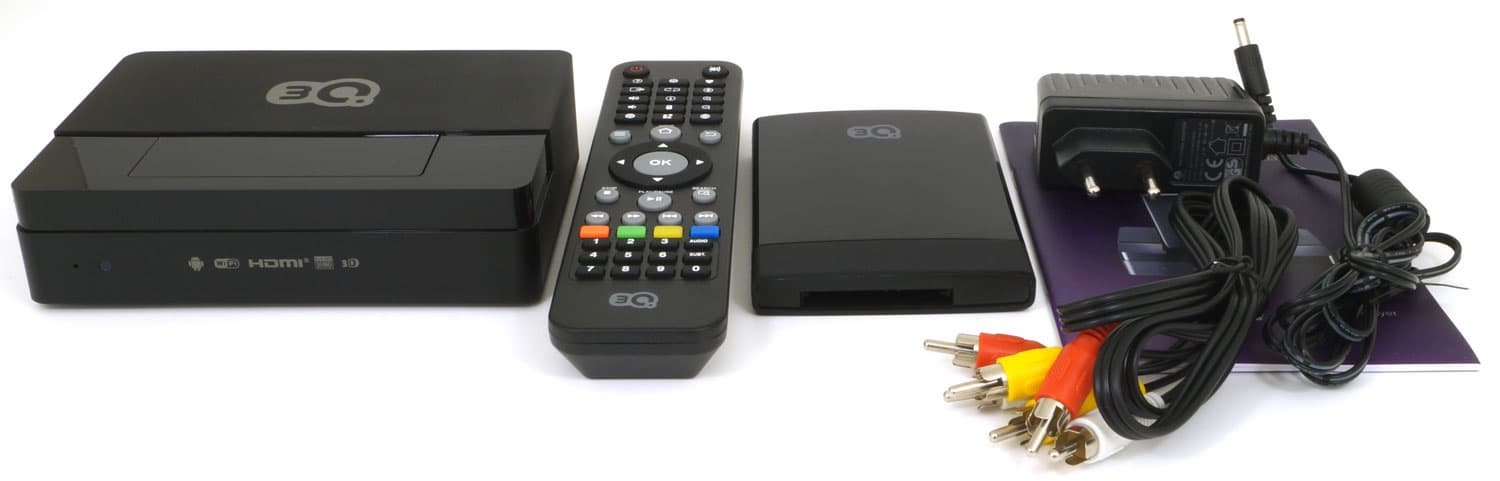 В комплекте с аппаратом имеется инфракрасный пульт ДУ, чехол для 2,5″ жесткого диска, адаптер переменного тока, композитный аудио/видеокабель и краткое руководство пользователя. Довольно скромный набор, явно предназначенный для тех, у кого в наличии имеется и нужный жесткий диск, и необходимый HDMI-кабель.