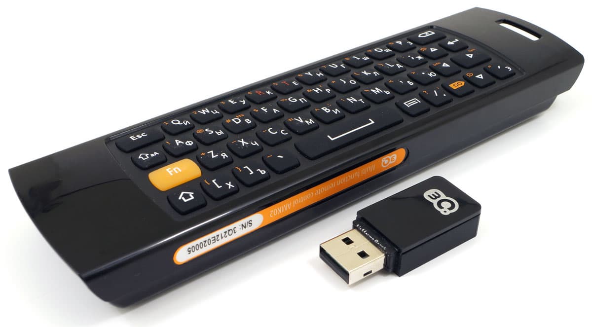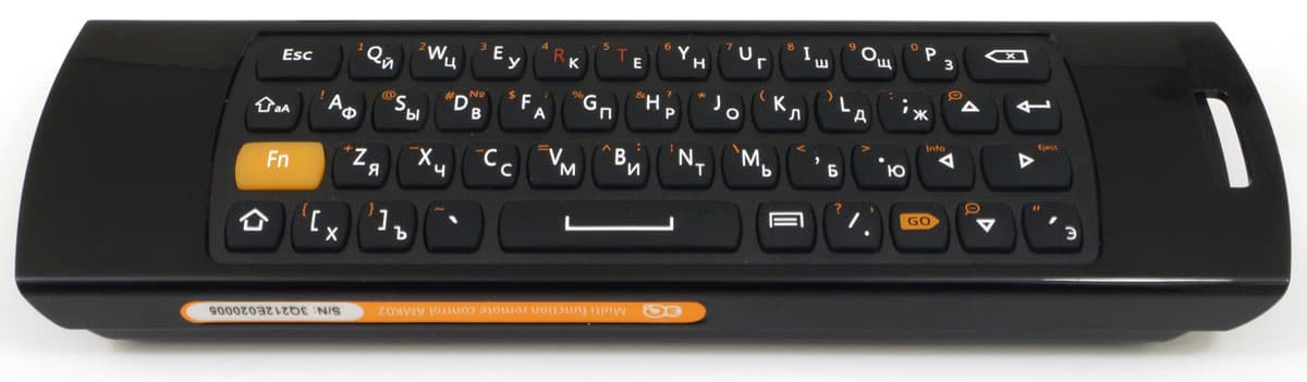 К сожалению, в комплект к плееру этот пульт не входит, а продается отдельно в качестве универсального. Нужно заметить, что этот пульт прекрасно работает и с обычным компьютером: кто желает аэромышь со встроенной клавиатурой?