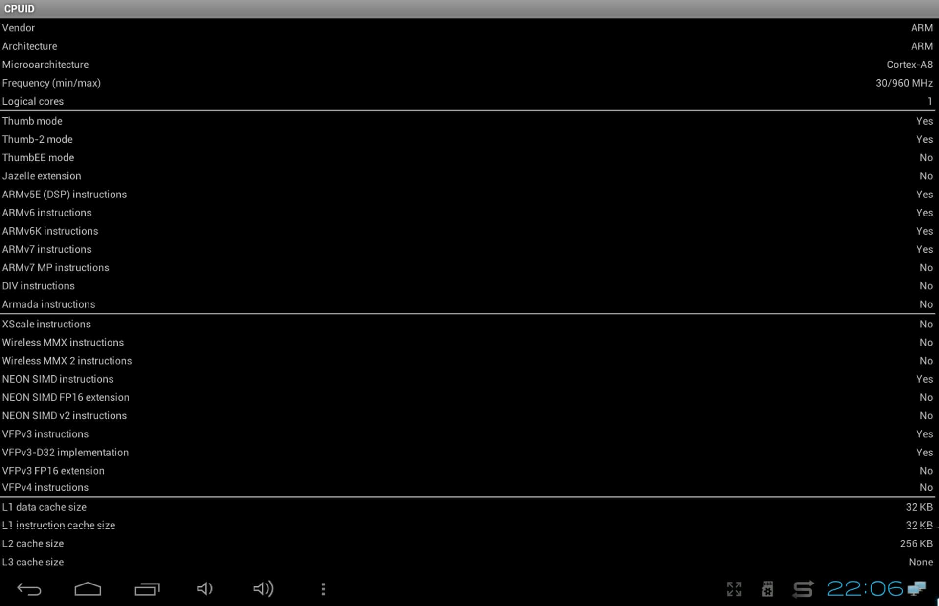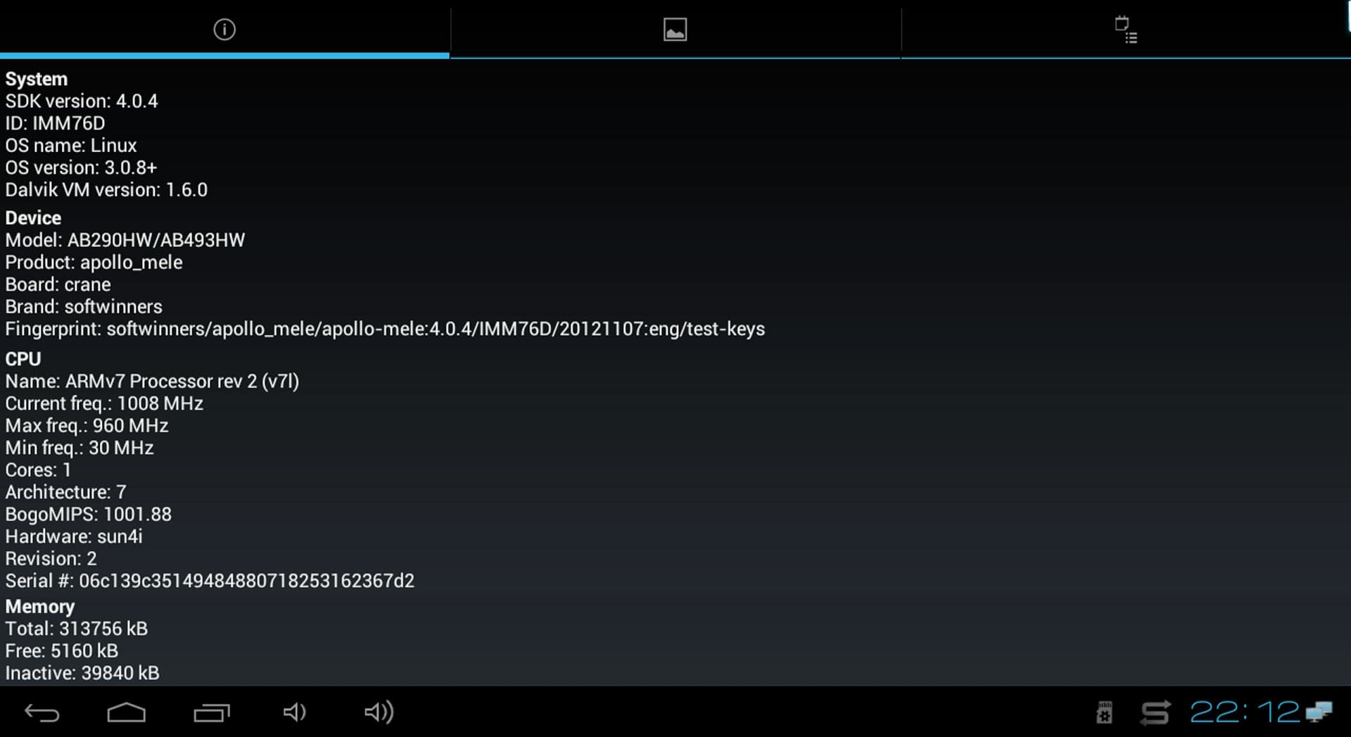 К сожалению, в доступных на официальном сайте спецификациях аппарата нет почти никаких сведений о процессоре, количестве оперативной и flash памяти, которой оснащен плеер. Поэтому ограничимся информацией, предоставленной самим устройством, а точнее, некоторыми из программ, кое-как сумевшими прочитать его характеристики: