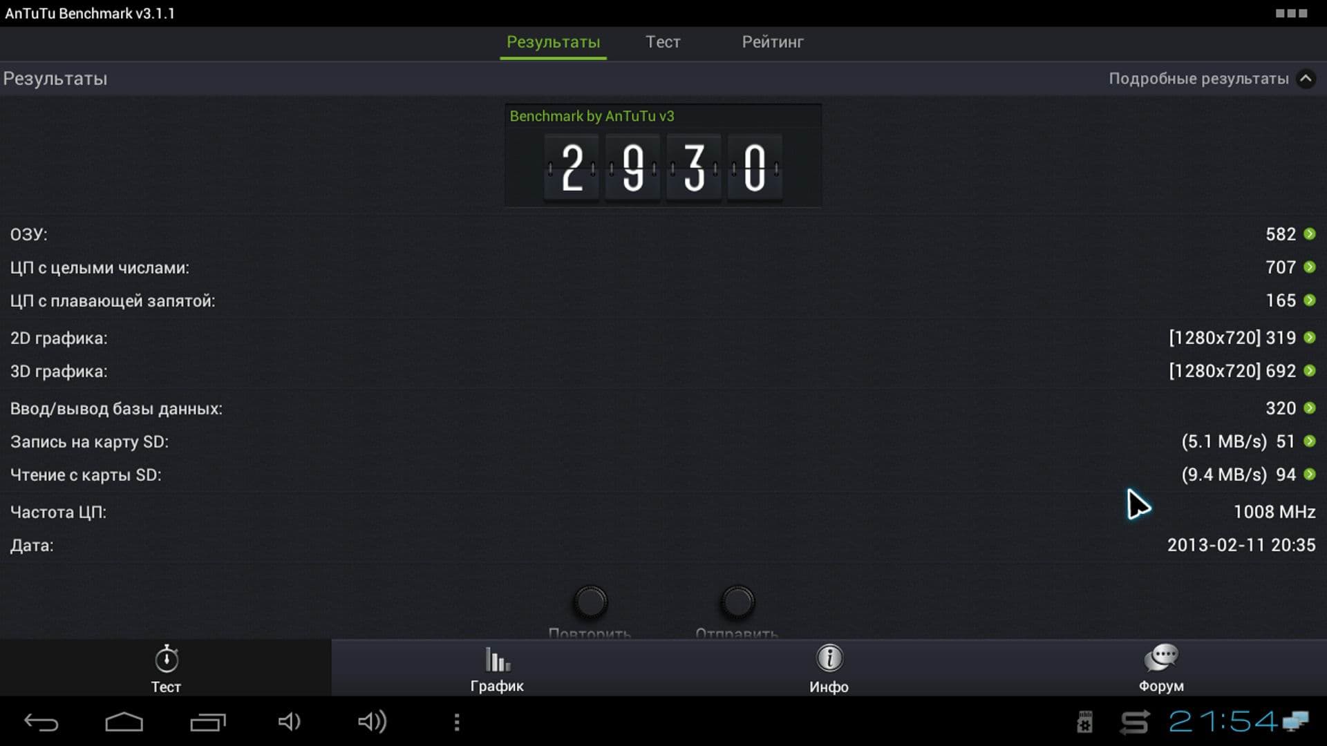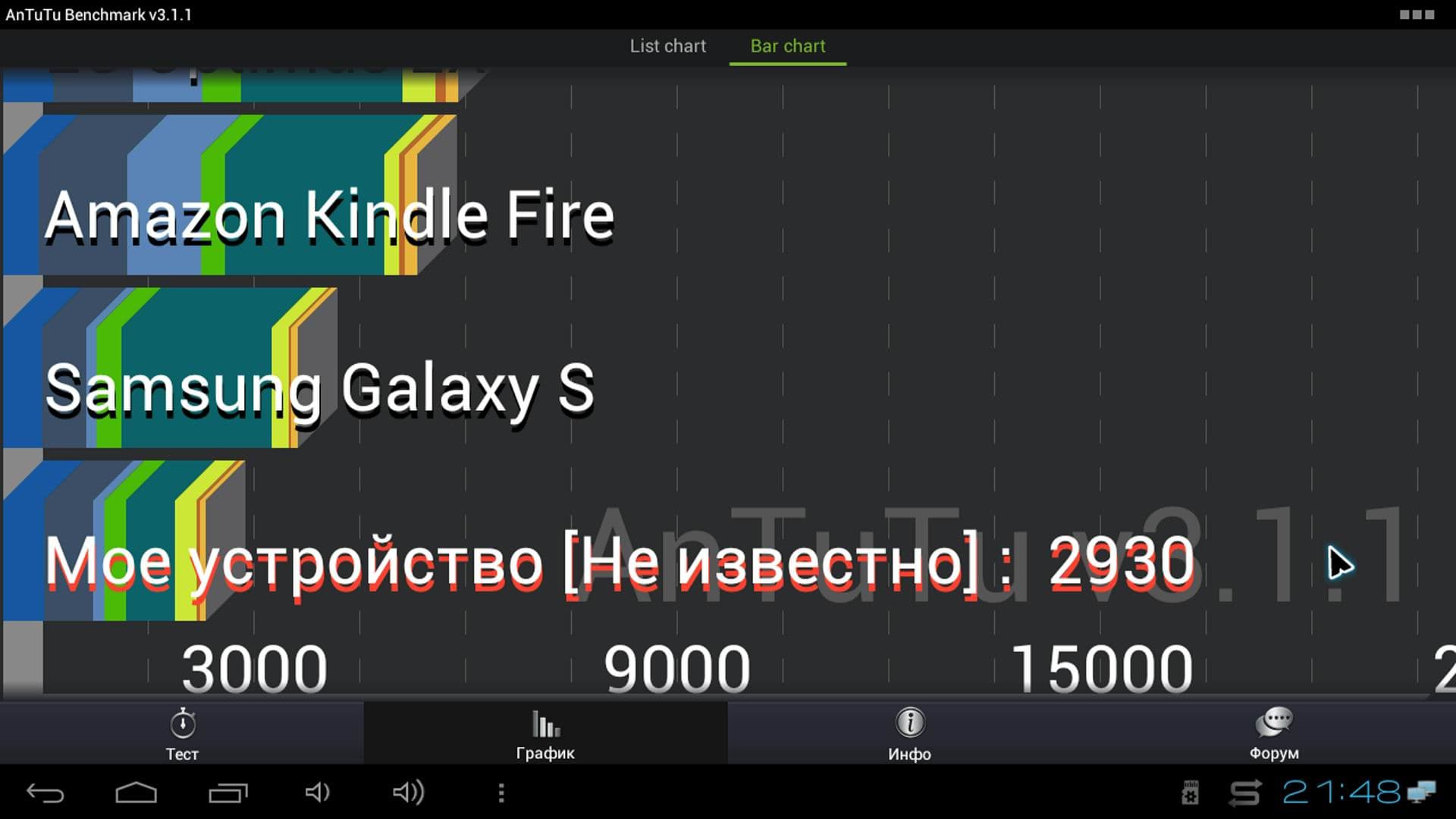 По итогам запуска бенчмарка AnTuTu наш плеер скромно уместился в самом низу стандартной диаграммы. О чем должен говорить этот факт? Понятия не имеем. Однако кто-нибудь пробовал воспроизвести образ диска Blu-ray 3D на «более мощном» Samsung Galaxy S? Это просто разный класс устройств, с разным же предназначением.