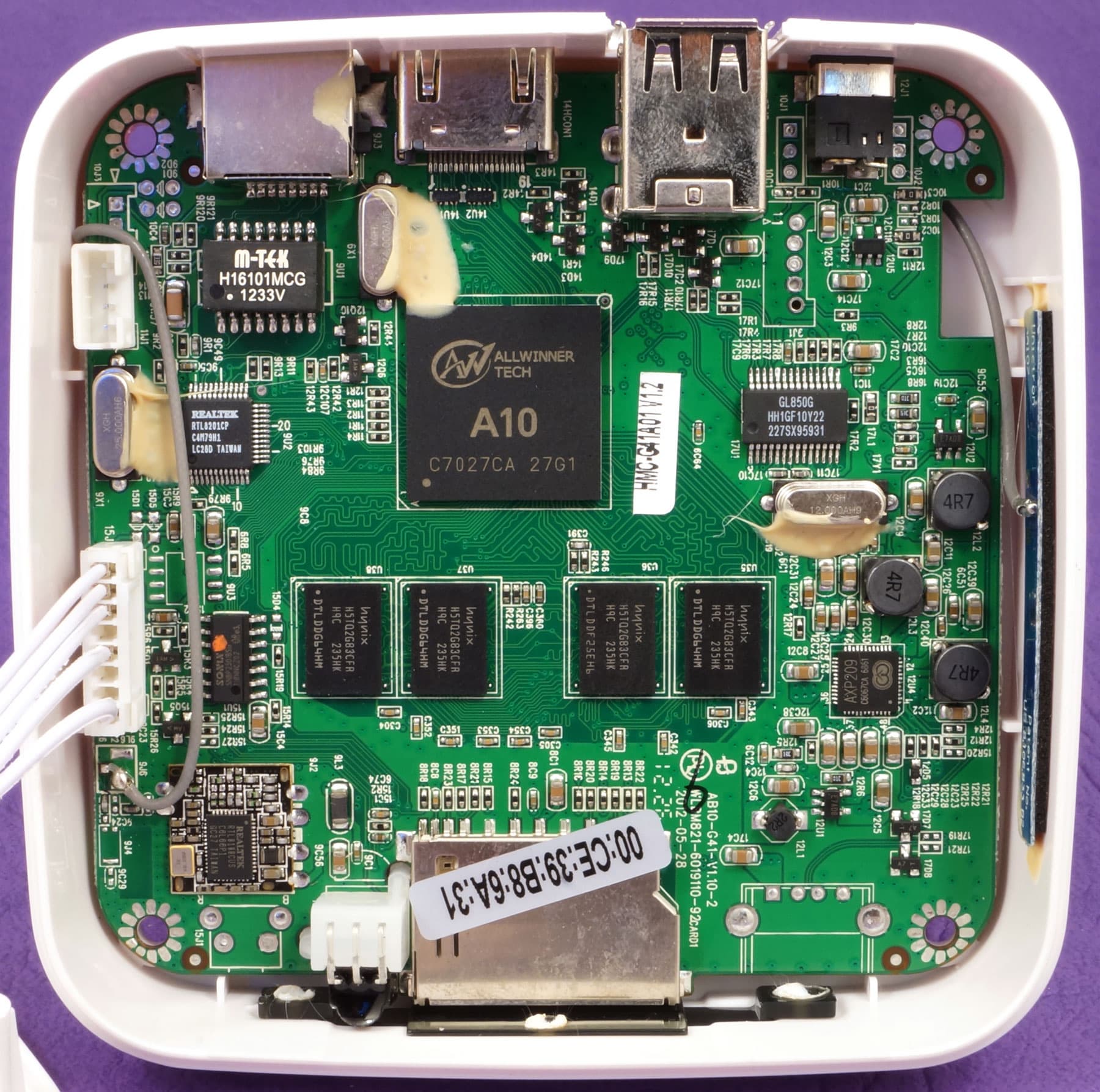Печатная плата, на которой разместилась электроника, занимает всю площадь корпуса устройства. Никакой системы охлаждения здесь не имеется, ни активной, ни пассивной. Тем не менее, корпус приставки нагревается лишь до 35 °C, но и то после двухчасового воспроизведения «тяжелого» HD-рипа.