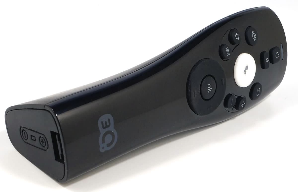 Будет неправильно, если в данной главе мы не упомянем гироскопический контроллер, с помощью которого во время тестирования управляли приставкой. Такое управление значительно удобнее, чем управление обычным ИК-пультом. Причем касается это не только рассматриваемой приставки. Дело в том, что данный гиропульт является самостоятельным универсальным устройством, которое может работать в паре с самой разной аппаратурой. Так, вставив приемник-стик в USB-порт ПК, пользователь обнаружит новое USB-устройство ввода, а курсор мыши будет послушно летать по экрану, повторяя движения руки, в которой находится пульт. Более того — нажатия кнопок данного пульта также «понимаются» управляемым устройством: центральная кнопка пульта играет роль левой кнопки мыши, а кнопка «Назад» — правой. Управление громкостью также может производиться кнопками аэромыши.