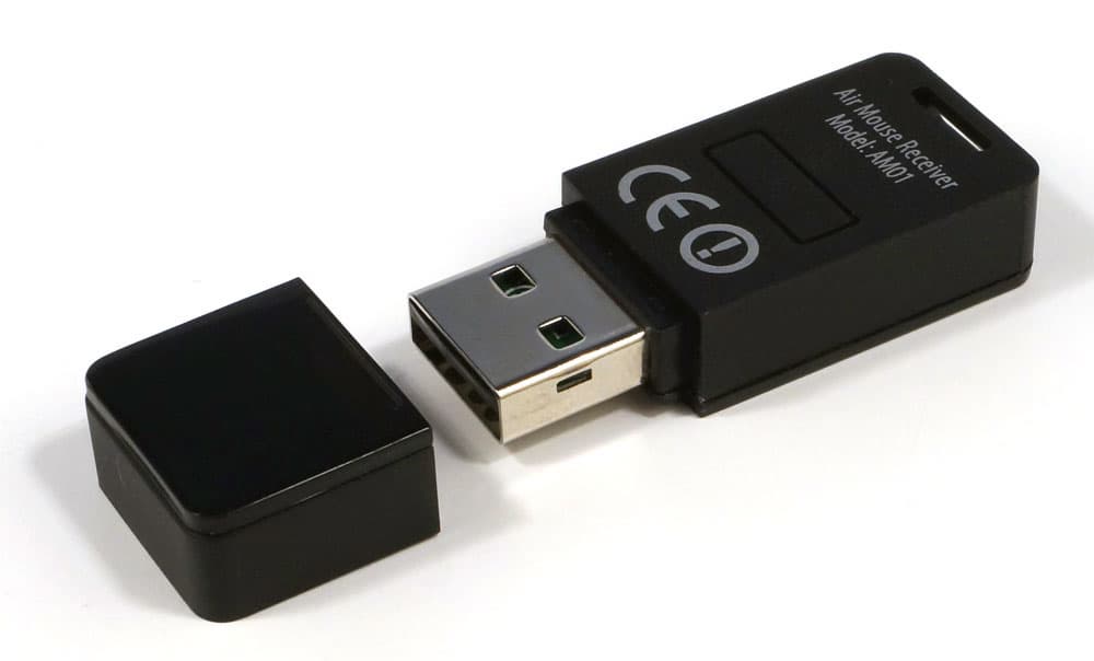 К пульту прилагается миниатюрный приемник-стик, соединяющийся с устройством, которым нужно управлять, посредством обычного USB.