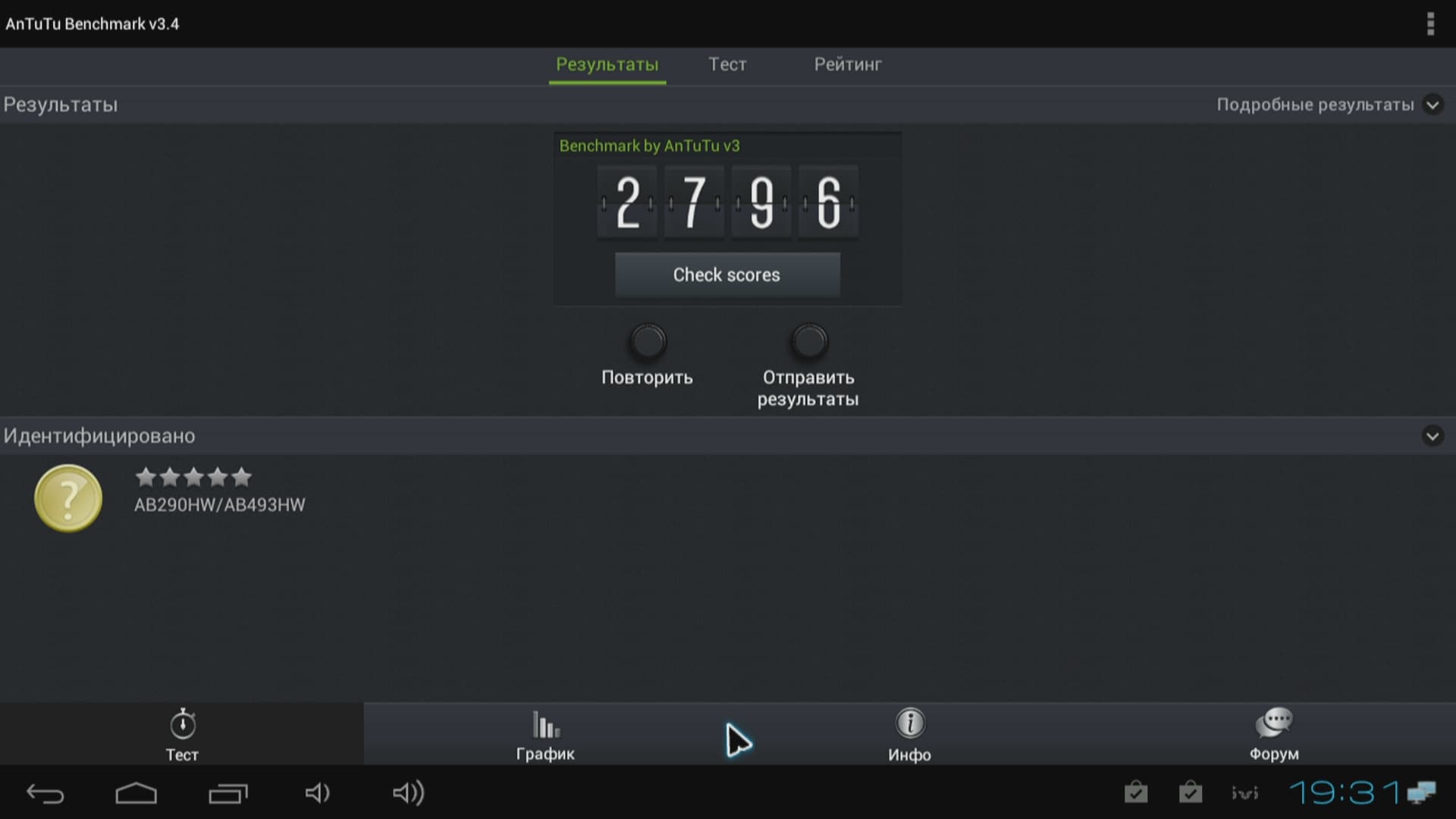 Следует ли тестировать приставки, подобные нашей, программами, предназначенными для тестирования устройств совсем иного класса? Трудно сказать. Теоретически, результаты такого тестирования могут указать место, которое заняла бы наша приставка, будь она планшетом или телефоном. Но ведь приставка — не телефон, и задачи у нее совсем иные. В 3D игры тут не поиграешь из-за отсутствия тач-управления с возможностью реакции нескольких одновременных нажатий. Даже аэромышь не поможет, она умеет имитировать только одиночное нажатие. Но все же, интереса ради, можно посмотреть, какое место «светит» рассматриваемой приставке, встань она в один ряд с планшетом: