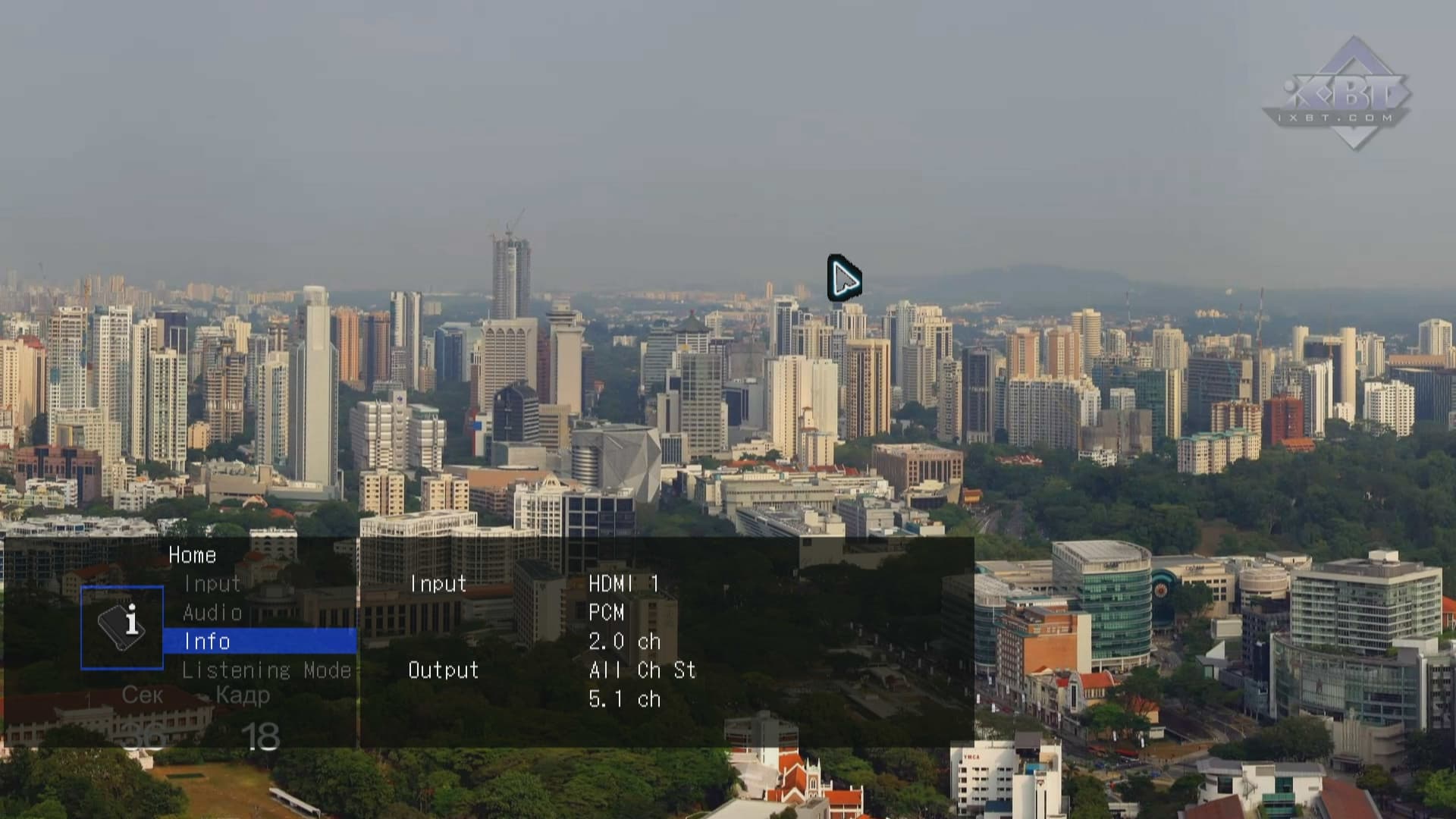 Теперь хотелось бы еще раз проверить, имеется ли возможность передачи HD звука в данной версии устройства. Ну, или хотя бы многоканального звука. Подключим приставку сквозь цифровой аудиоресивер, и запустим воспроизведение нужного файла с HD звуком: