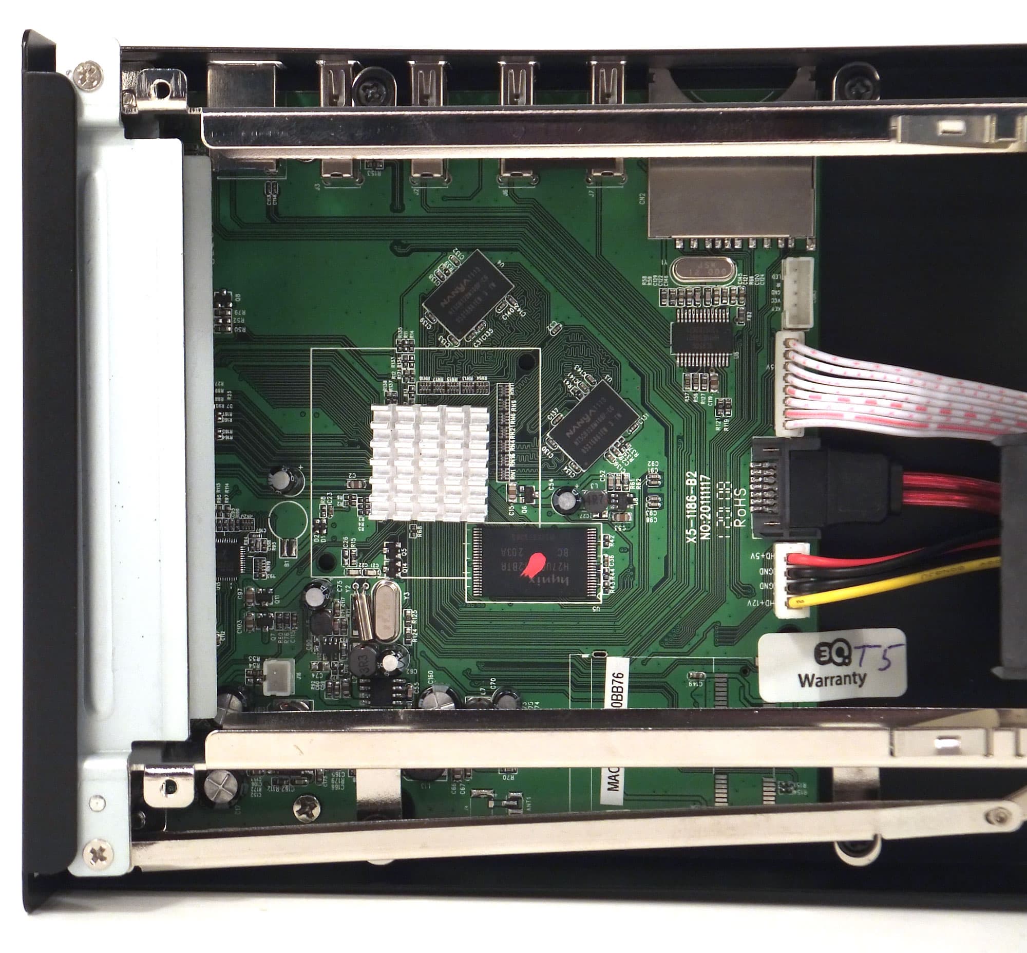 Отсутствие вентилятора — серьёзный аргумент в пользу продукта такого класса, как домашний мультимедиаплеер. Любые вентиляторы, которые обычно используются в популярных медиаплеерах, со временем изнашиваются, всё громче и звонче напоминая о своём существовании. Здесь же используется пассивная схема охлаждения, когда тепло отводится посредством небольшого алюминиевого радиатора, наклеенного на процессор, и через металлические стенки корпуса плеера. Надо заметить, отводится очень неплохо: часовое воспроизведение 3D Blu-ray образа, записанного на встроенный HDD, «нагрело» металлическую крышку плеера до 33 °C, нижнюю часть корпуса до 40 °C (видимо, из-за соприкосновения с процессором), а радиатор процессора нагрелся до 58 °C. Жёсткий диск (SATA WD10EARS серии Caviar Green) при этом имел температуру поверхности в районе шпинделя 47 °C, что не радует. Возможно, в более жарких условиях может появиться реальная опасность перегрева HDD (тестирование проводилось в помещении с температурой воздуха 24 °C). Эх, кабы снабдить этот плеер SSD-диском, да стоимость таких накопителей кусается.