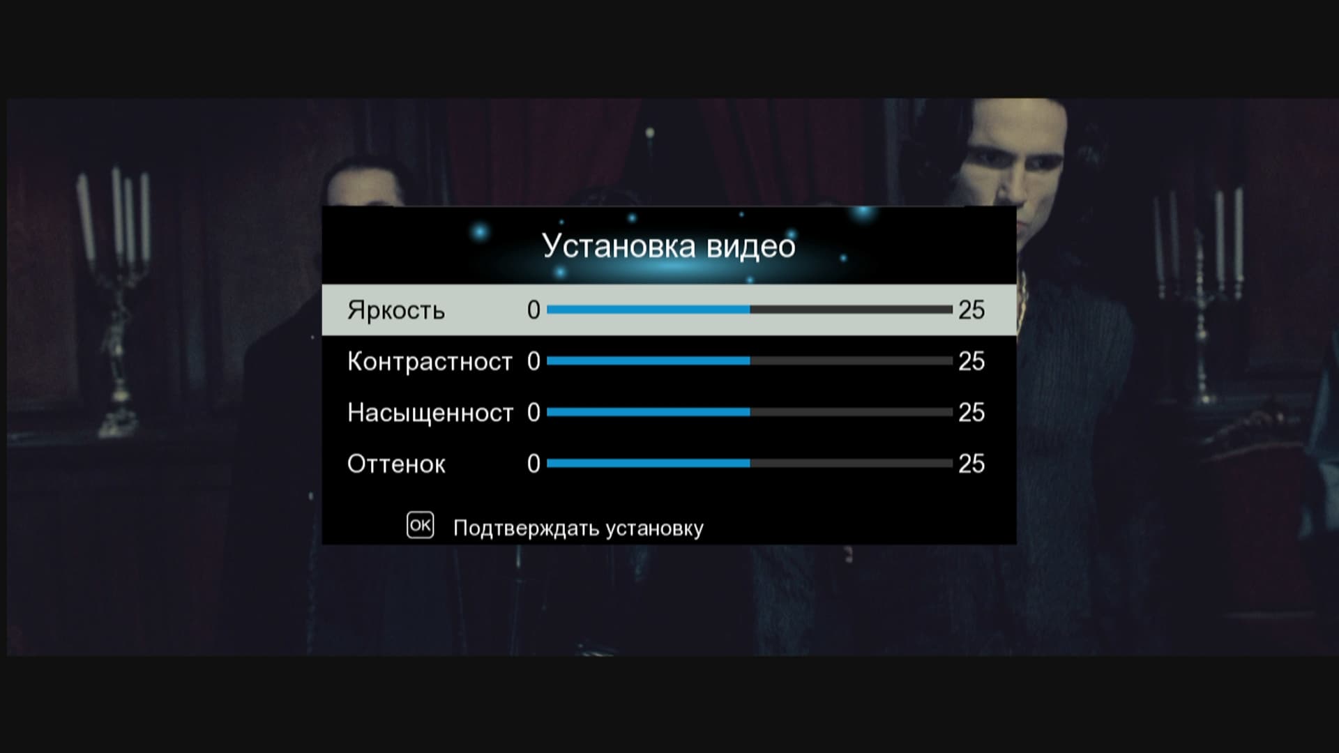 Нажатием кнопки Menu вызывается список команд, где присутствует даже такой, как тонкая настройка изображения. Перевод этих пунктов на русский язык иногда хромает, но, надеемся, разработчик внесёт исправления в прошивку.