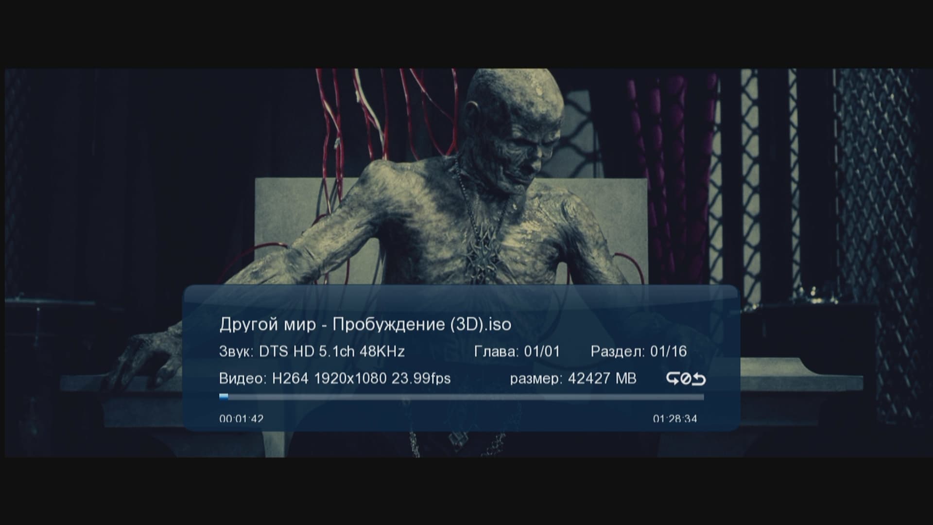 Тут самое время вспомнить, что изучаемый плеер способен воспроизводить 3D-фильмы. Как это происходит? Всё зависит от формата стереоскопии. Так, ремуксы или образы 3D Blu-ray дисков автоматически распознаются плеером как 3D-контент, при этом воспроизведение переходит в соответствующий режим, о чём плеер лаконично сообщает: