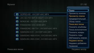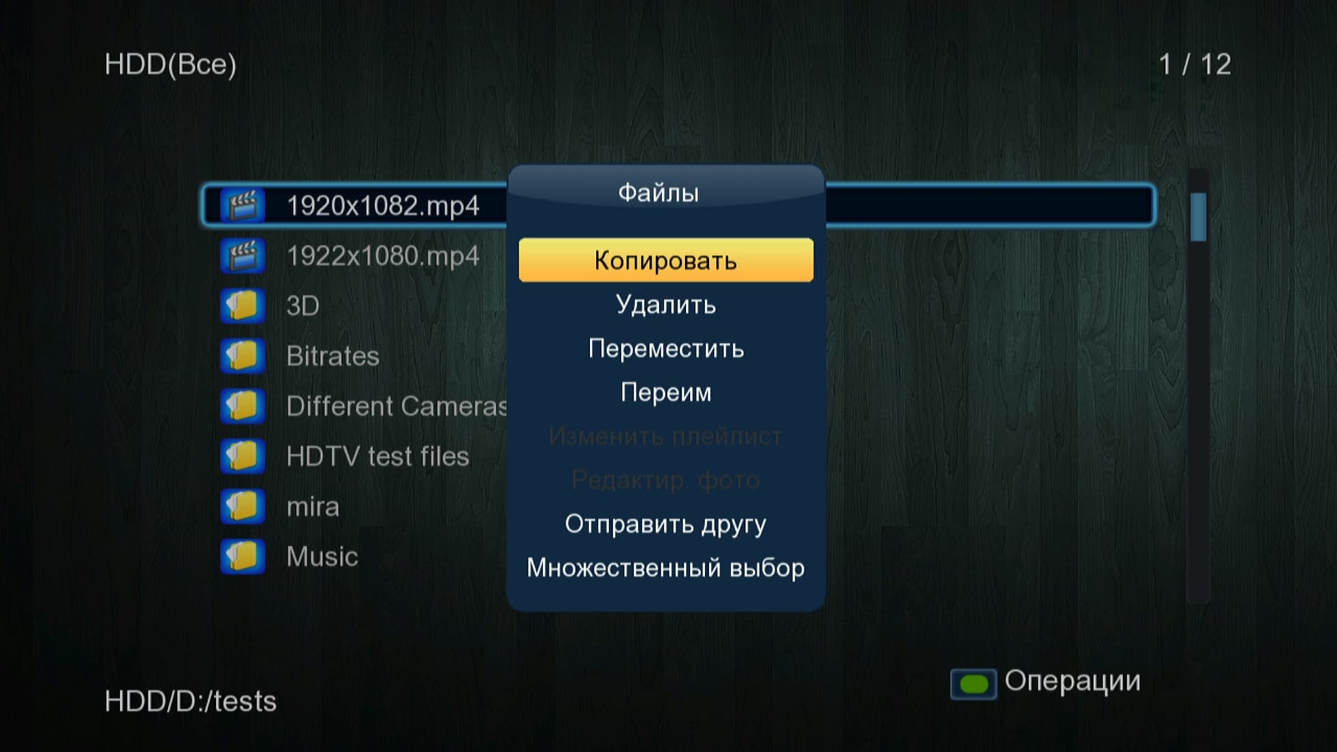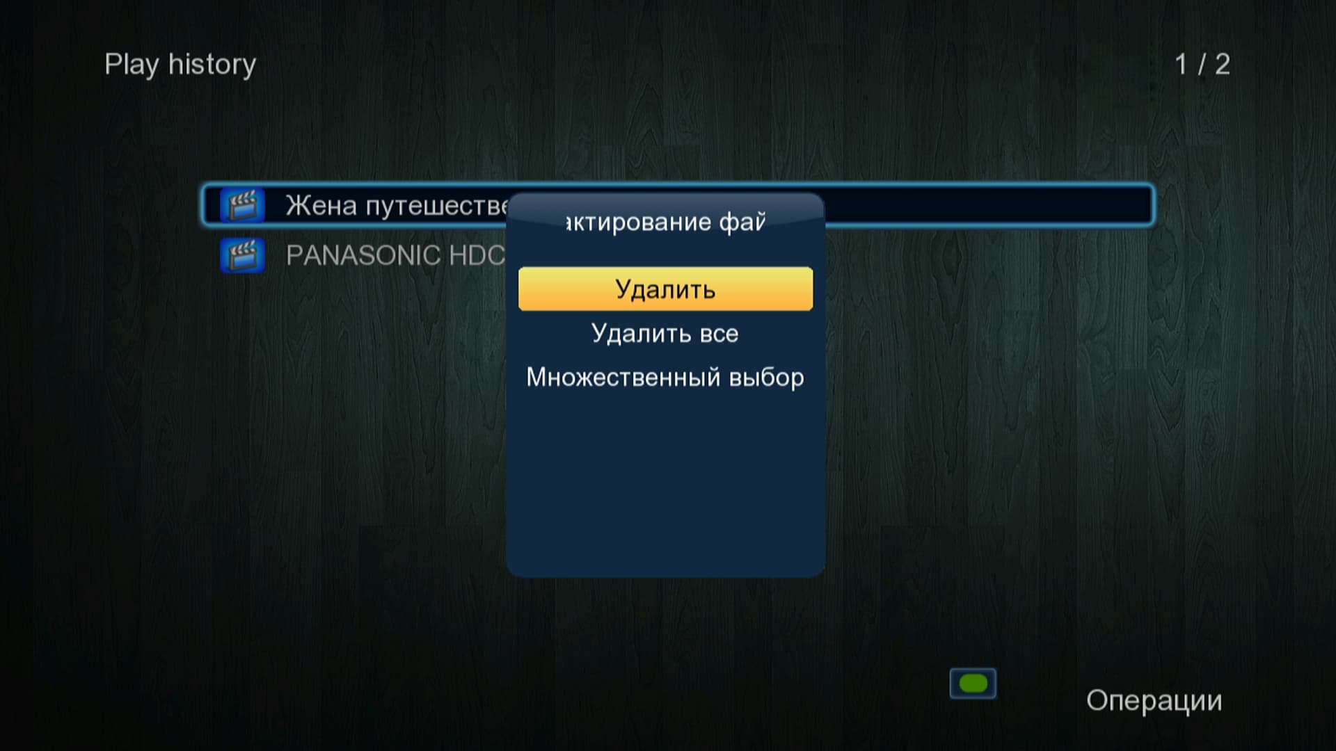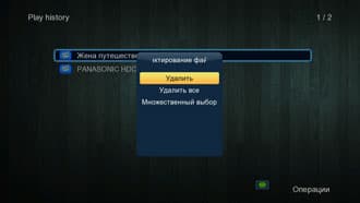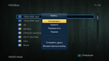 Операции с файлами в браузере производятся посредством вызова ещё одного меню, появляющегося по нажатию зелёной кнопки на пульте ДУ: