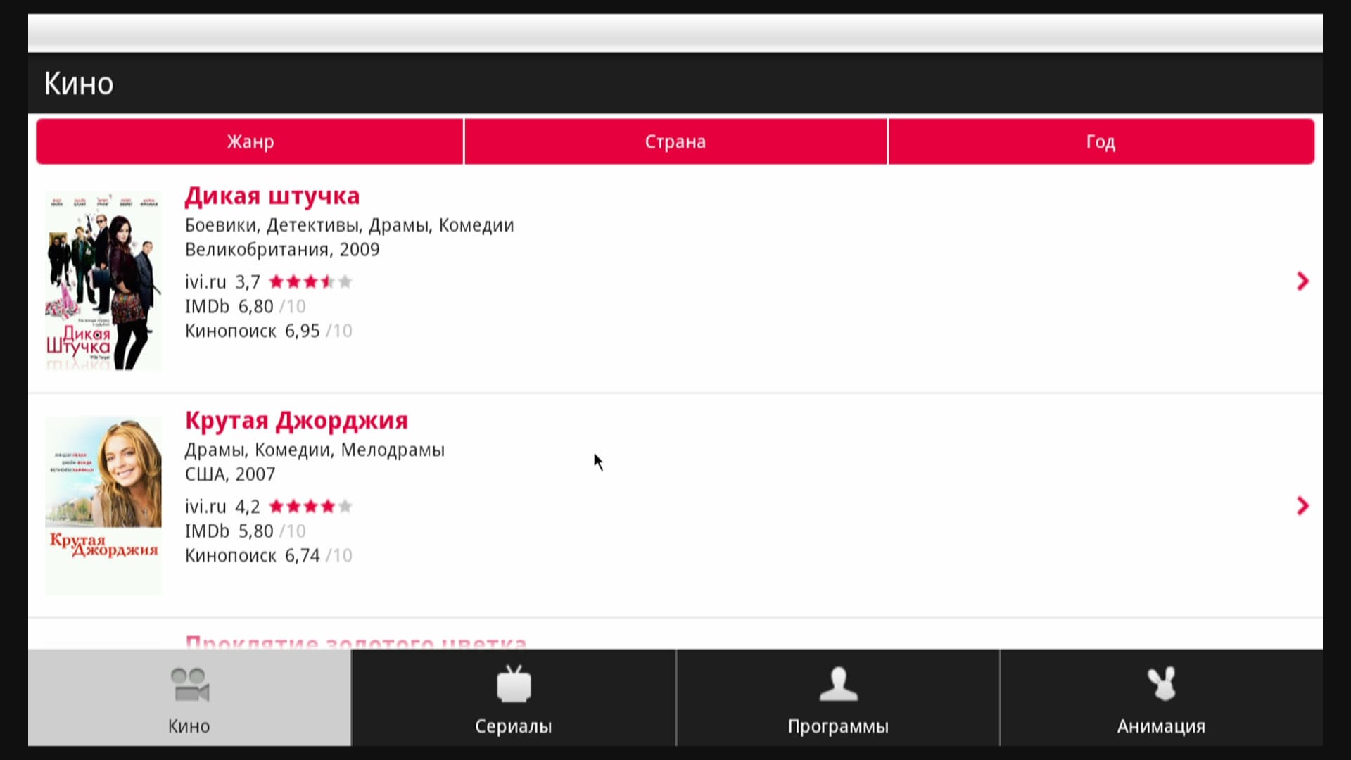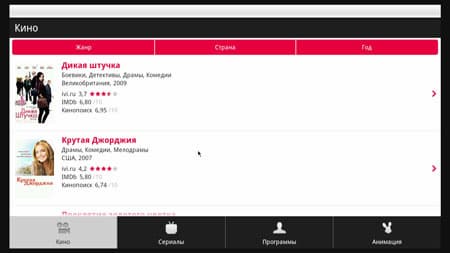 Страсть как хотелось расширить этот бедный набор приложений, но, к сожалению, в данной сборке Android отсутствует Google Play Store. При установке программ «вручную», посредством запуска *.apk-файлов, многие приложения отказались устанавливаться (возможно, не понравилась версия Android), а те, что всё-таки установились, не запускались по разным причинам. Чаще всего отказ следовал из-за якобы отсутствующего соединения с интернетом, хотя розетка сетевого кабеля, вставленная в порт плеера, исправно помаргивает зелёным диодом. Ну, это знакомо… Ведь приложение думает, что оно запущено на телефоне, в котором нет и не может быть проводной локальной сети. Достаточно было выдернуть сетевой кабель и вставить в USB-порт упоминавшийся Wi-Fi-адаптер — и такое приложение, как ivi.ru, тут же заработало. Правда, как-то неуверенно, время от времени вылетая с ошибкой. Но всё-таки заработало же!