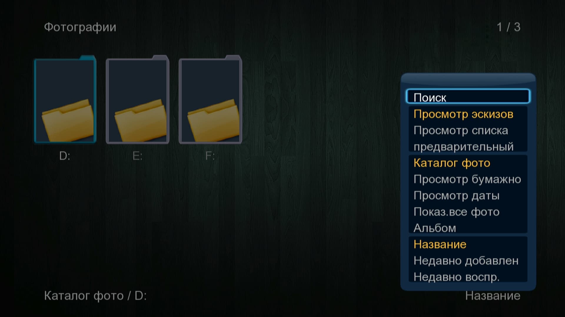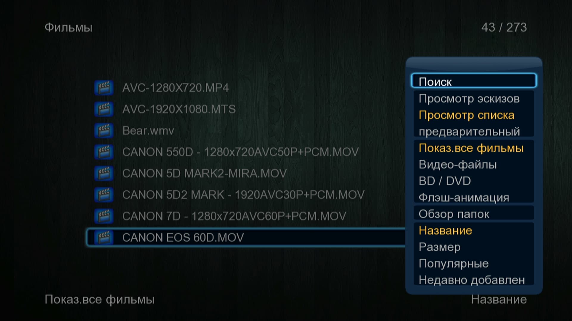 Помимо этого, браузер может быть трансформирован для отображения только нужных пользователю типов файлов: кино, музыка, фото. В зависимости от выбранного режима изменяются и команды всплывающего меню: