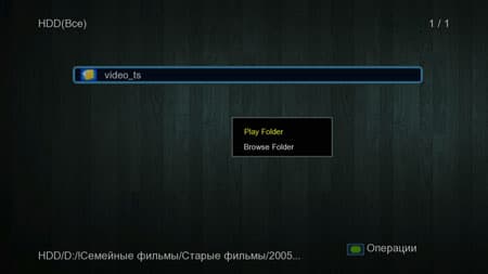 Плеер не в состоянии отобразить меню дисков Blu-ray (но поддерживает переход по сценам, имеющимся в структуре диска), при этом аппарат охотно работает с DVD-меню. Для того, чтобы запустить воспроизведение фильма, находящегося в папке, скопированной с диска (video_ts или BDMV), требуется выделить эту папку и нажать ОК на пульте ДУ. Плеер распознаёт содержимое открываемой папки и, учитывая, что внутри неё имеется структура диска, предлагает на выбор одно из двух действий: воспроизвести фильм либо зайти в эту папку, продолжив работу в режиме файлового браузера.