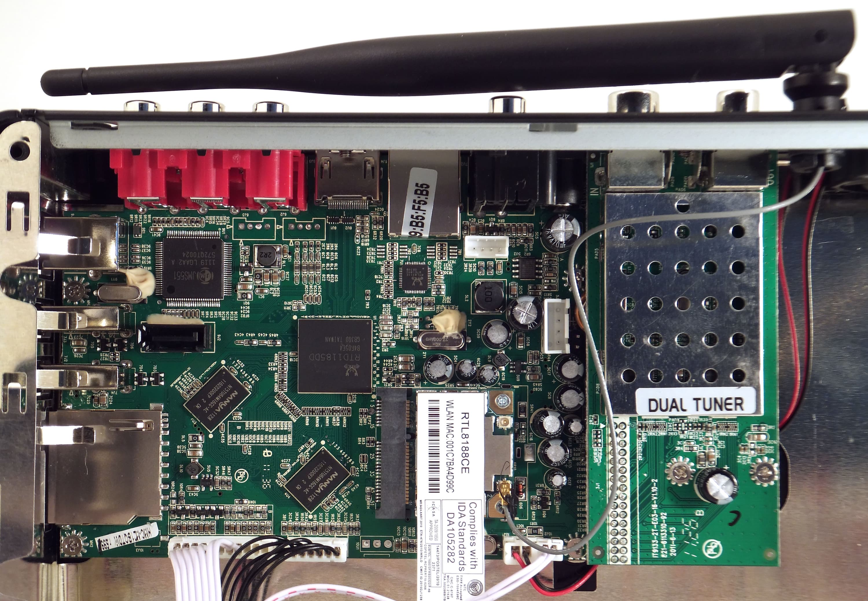 Главным чипом плеера является проверенный временем Realtek RTD1185DD, работающий на частоте 500 МГц. Беспроводная сеть организована посредством WLAN RTL8188CE того же Realtek. Двойной DVB-T-тюнер выполнен в виде единого блока.