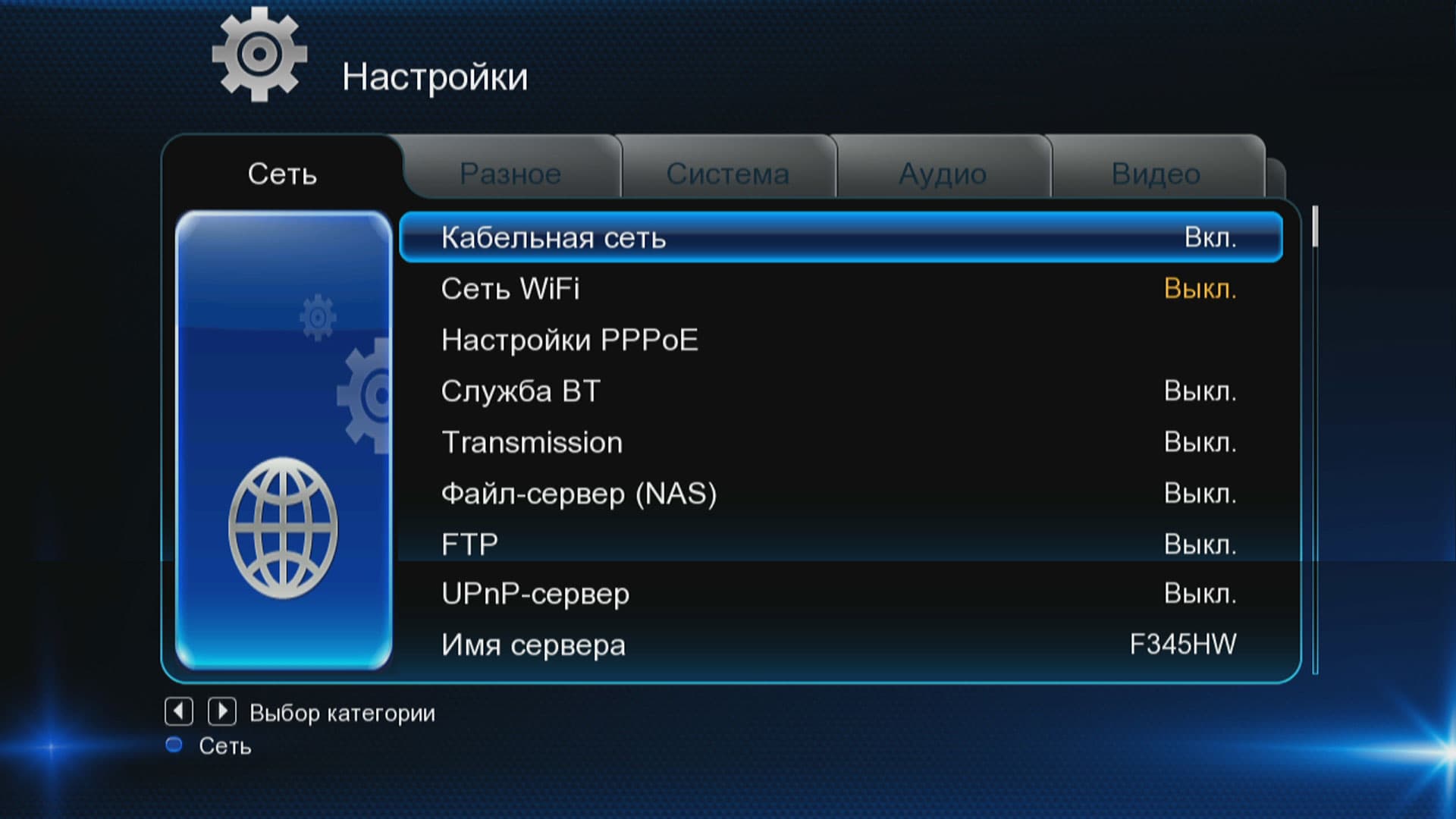 Внимание! Работа таких служб, как встроенные серверы и веб-сервисы, возможна только после форматирования установленного жёсткого диска с помощью плеера (Настройки → Система).