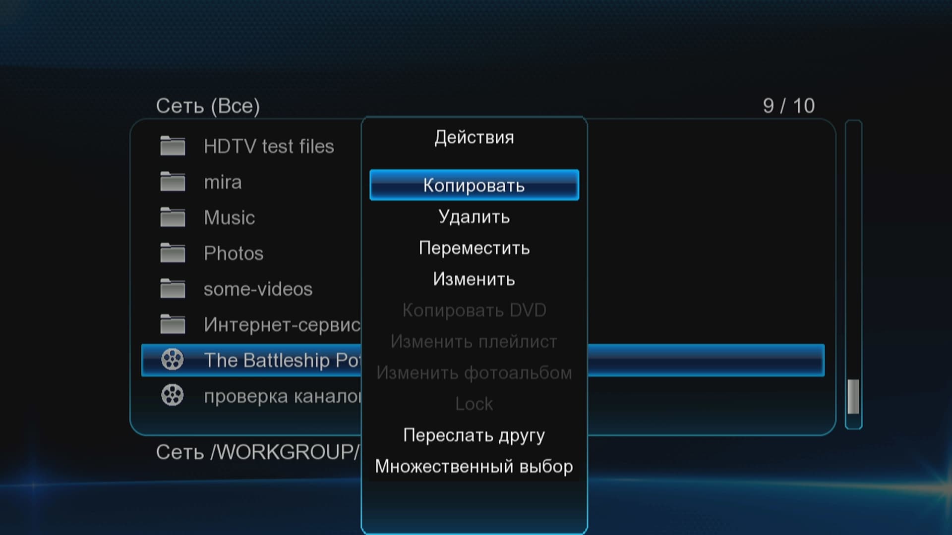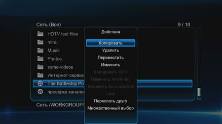 В первую очередь оценим скорость сети. Она составляет в среднем 7 мегабайт в секунду при копировании (замерялось время копирования файла с ПК на HDD плеера посредством имеющегося в аппарате файлового браузера).