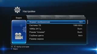 | В аудионастройках, помимо прямого вывода звука, имеется возможность преобразования в LPCM | Видеонастройки включают в себя изменение соотношения сторон экрана, выбор ТВ-системы, активацию режима «плазма» с тремя градациями чёрного, выбор глубины цвета (Авто, 12 и 10 бит), а также настройку размера экрана, определяемого тонкой красной рамкой, границы которой можно подвинуть стрелками на пульте ДУ либо соответствующими кнопками на корпусе плеера |