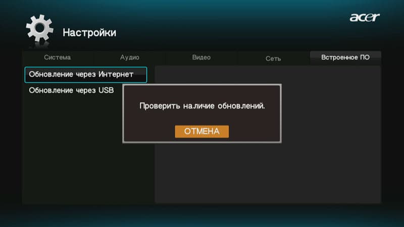 В последнем пункте, называющемся Встроенное ПО, имеется возможность обновить прошивку аппарата. Причём сделать это можно как вручную, так и в автоматическом режиме, через интернет.