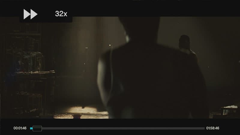 К сожалению, в плеере отсутствует возможность быстрого перескока по фильму, нет и привычной кнопочки GoTo. Быстро промотать фильм можно только лишь, включив 32-ю скорость.