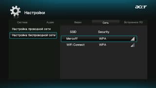 | Настройка беспроводной сети | Выбор из списка доступных беспроводных сетей |