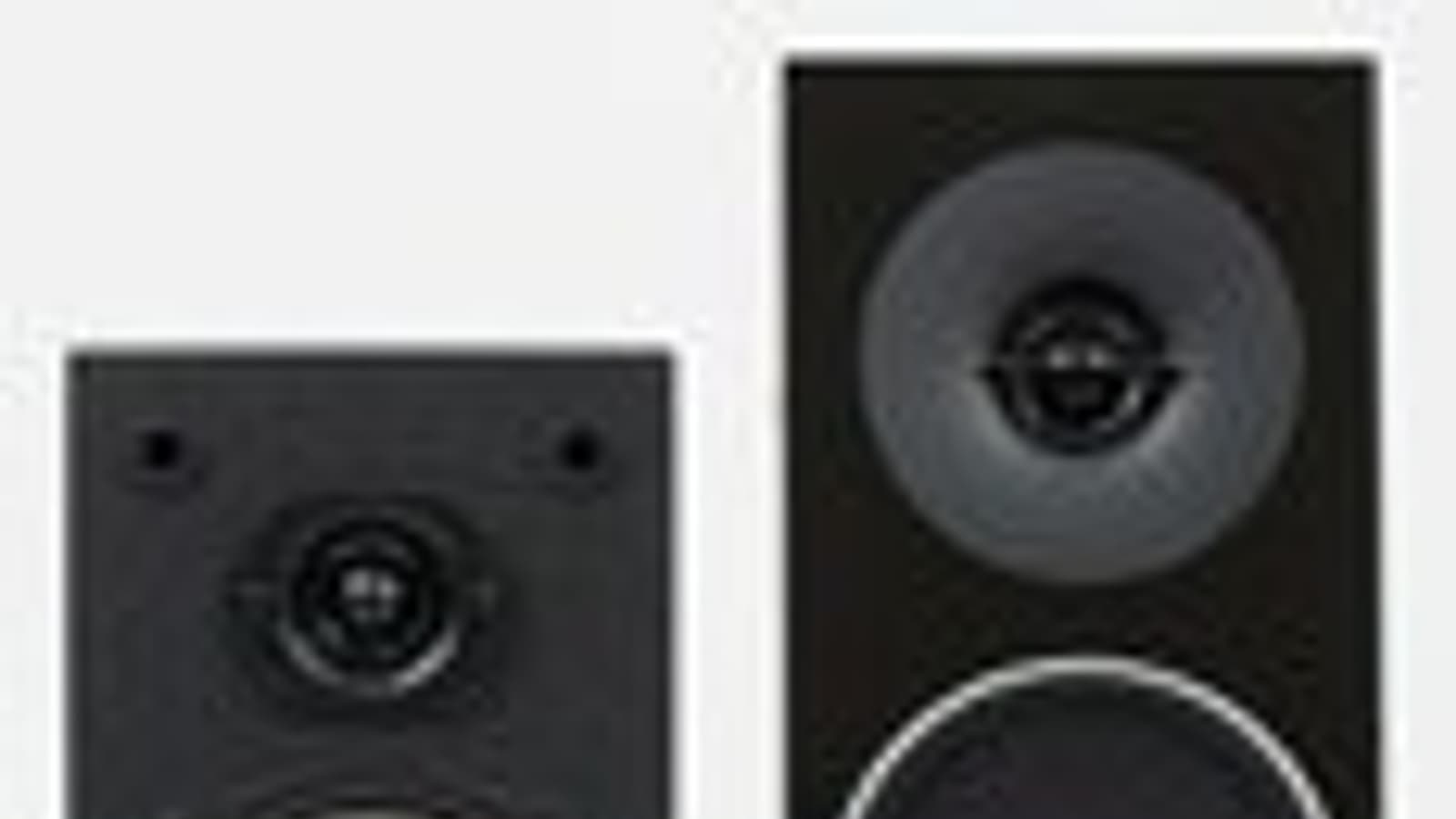 Корпуса сателлитов акустически оформлены как закрытый ящик, а конструктивно выполнены так же, как и сабвуфер: коробка из MDF с пластиковой фронтальной накладкой. Эта накладка целиком глянцевая, лишь место установки СЧ-динамика закрыто мягкой тканью и окружено серебристым кольцом, да вокруг твитера есть круглая матовая область. Нижняя часть накладки выступает за габариты корпуса и приподнимает фронтальную часть сателлита, направляя динамики немного вверх. Чтобы колонки не скользили, на этом выступе и на противоположных углах нижней плоскости корпуса есть наклейки из губчатой резины.