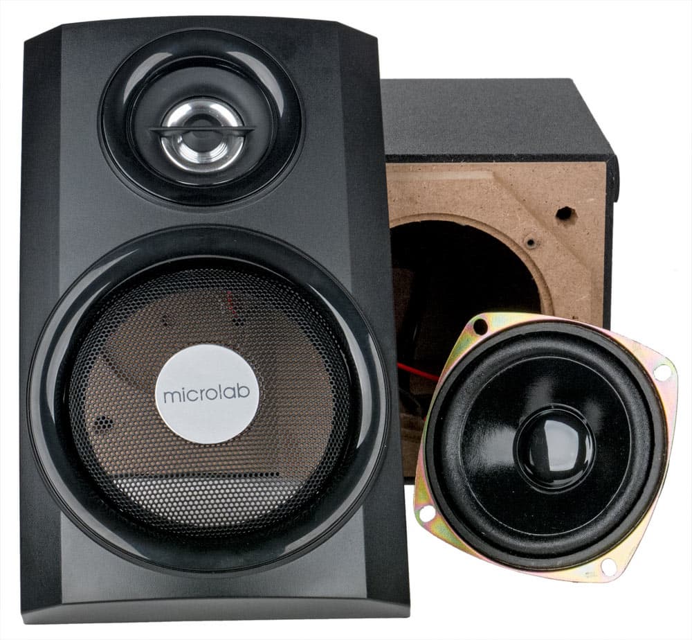 Корпуса колонок сделаны из MDF среднего качества; толщина стенок сателлитов составляет 8,5 мм, в месте крепления СЧ-динамика есть дополнительная накладка той же толщины. У сабвуфера стенки чуть толще, по 9 мм, звукопоглощающих материалов ни в нем, ни в сателлитах нет. Твитер закреплен на фронтальной пластиковой накладке, разделительный фильтр сделан на одном конденсаторе емкостью 2,2 мкФ.