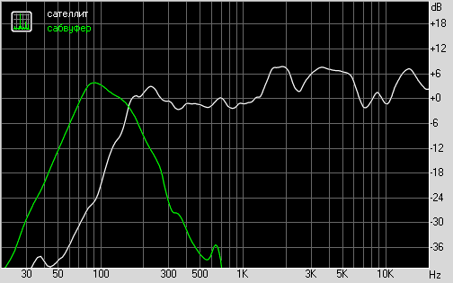Совмещенные графики АЧХ сателлита и сабвуфера