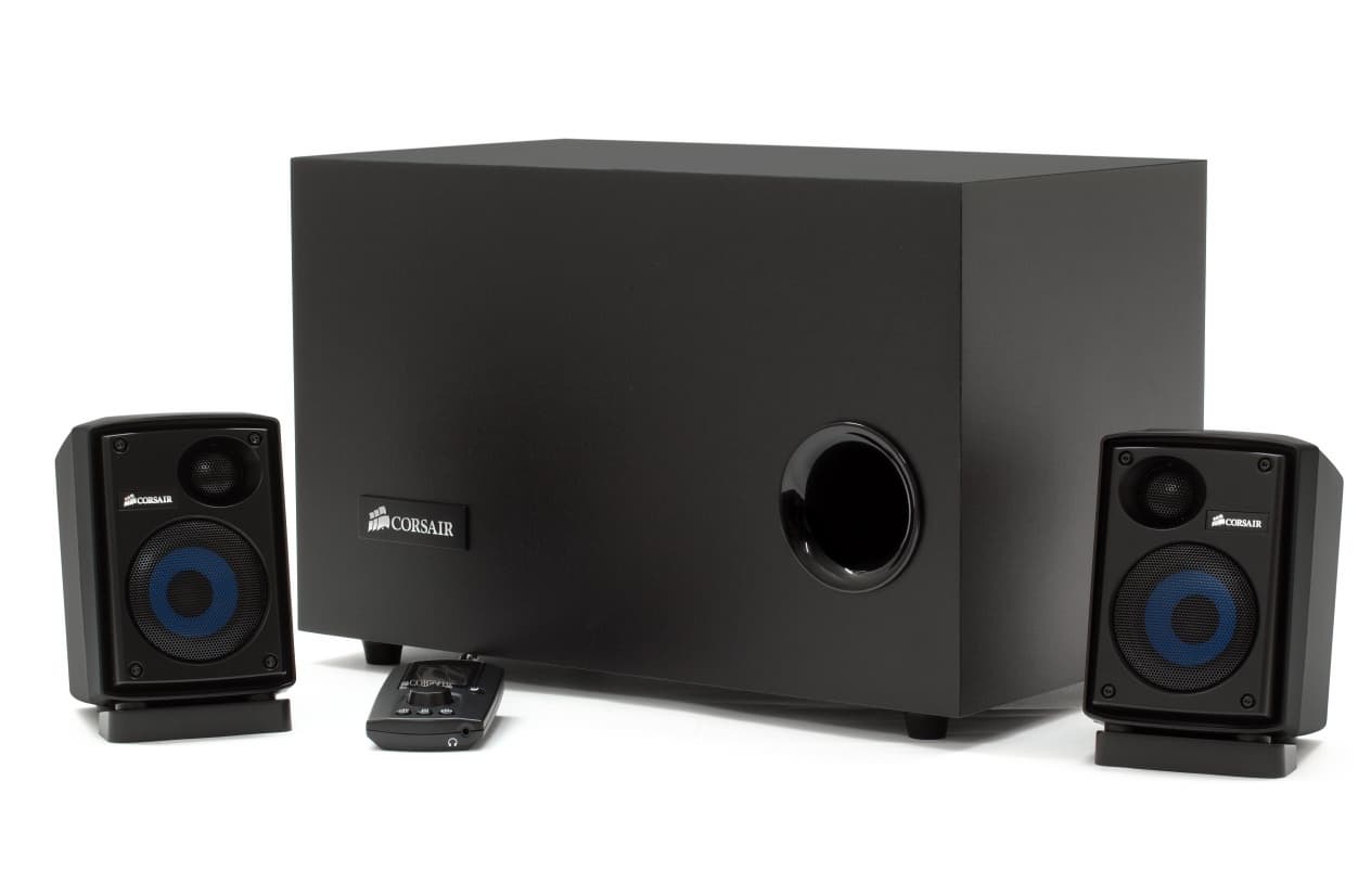 Наборы Logitech и Creative ничем особенным не выделяются. Отдельно стоит отметить акустику Corsair: дебют нового производителя выглядит очень уверенно. Если проводить отбор акустики для сравнения исключительно по форм-фактору, Corsair составил бы очень острую конкуренцию всем распространенным брендам.