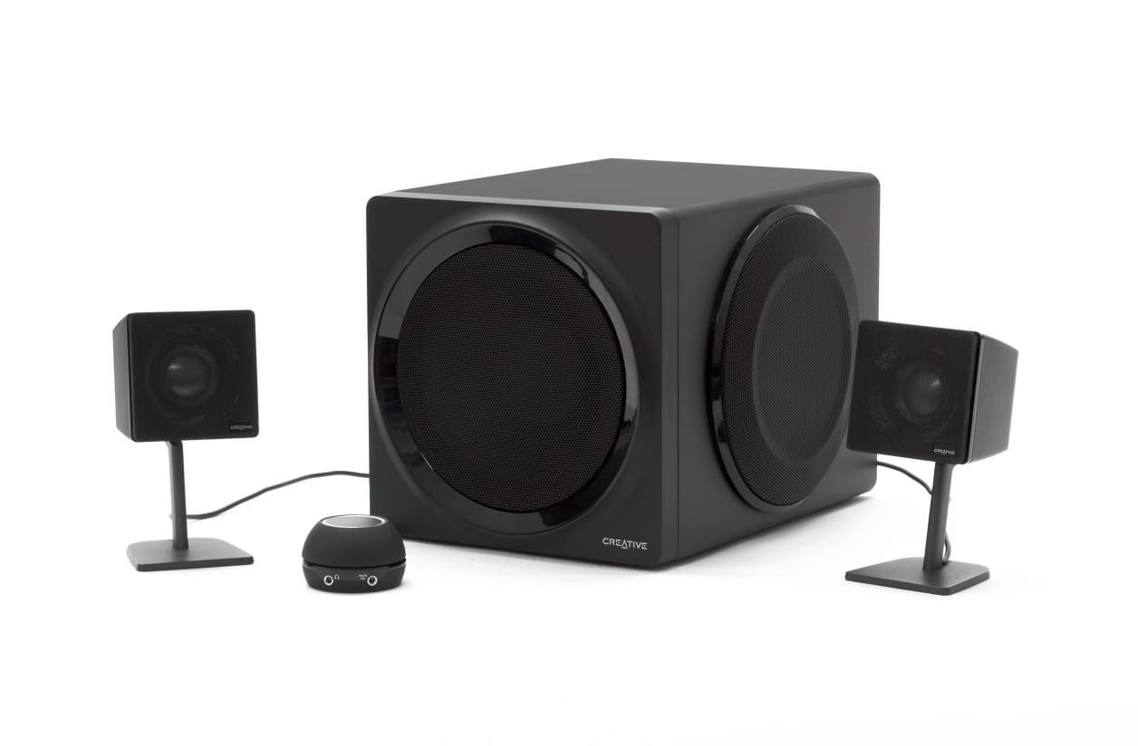 Качество звучания акустики Creative находится на среднем уровне, основные претензии заключаются в возможностях сателлитов. Однополосные колоночки имеют закономерно неполноценное звучание на высоких частотах и обедненный нижний диапазон средних частот. Кроме этого, в звучании наблюдается специфический окрас в верхней области СЧ. Эквалайзер в колонках не предусмотрен, поэтому для улучшения звучания придется использовать програмные возможности плеера. Сабвуфер для своих небольших габаритов играет хорошо. С миниатюрными колоночками его запаса по громкости более чем достаточно. Для комфортного и сбалансированного звучания положение регулятора громкости сабвуфера обычно не переходит за 20%.