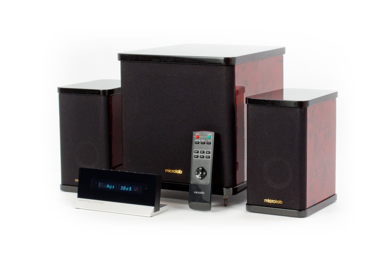 Качество звучания сабвуфера вполне соответствует сателлитам. Паразитных средних частот в его звучании не наблюдается, поэтому распространенной проблемы локализации третьей колонки у Microlab нет. Нижняя граничная частота не рекордная, но звучание насыщено инфранизкими в достаточной степени. Так же, как в предыдущем случае, выведенный вперед НЧ-динамик обеспечивает звучание разборчивостью.