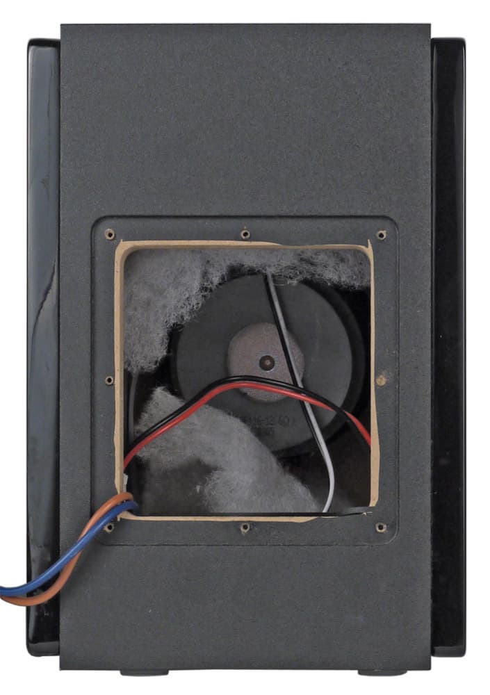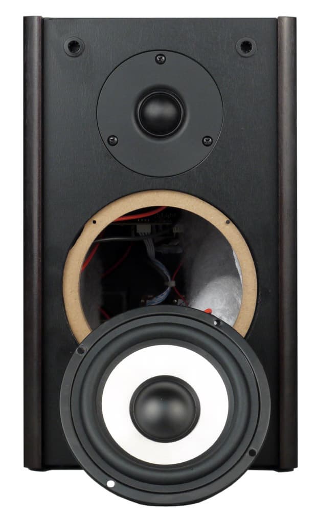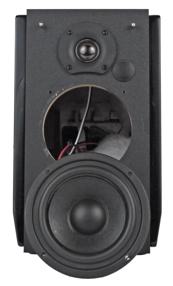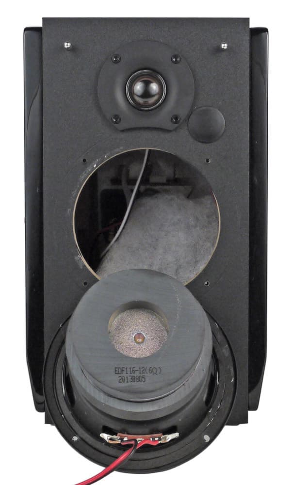 НЧ/СЧ-динамик имеет 9-сантиметровый бумажный диффузор на резиновом подвесе и сопротивление обмотки 6 Ом. Дюймовый купол твитера сделан из полупрозрачного дымчатого полимера, а вот какой-либо маркировки на корпусе нет. Места стыка обоих динамиков с панелью снабжены уплотнителями, а внутри колонок есть звукопоглощающий материал.
