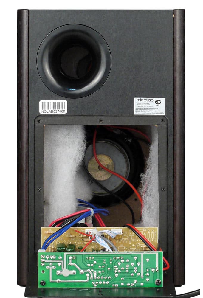 Акустическое оформление такое же, как у двух остальных образцов: фазоинвертор, только порт выведен на лицевую панель.