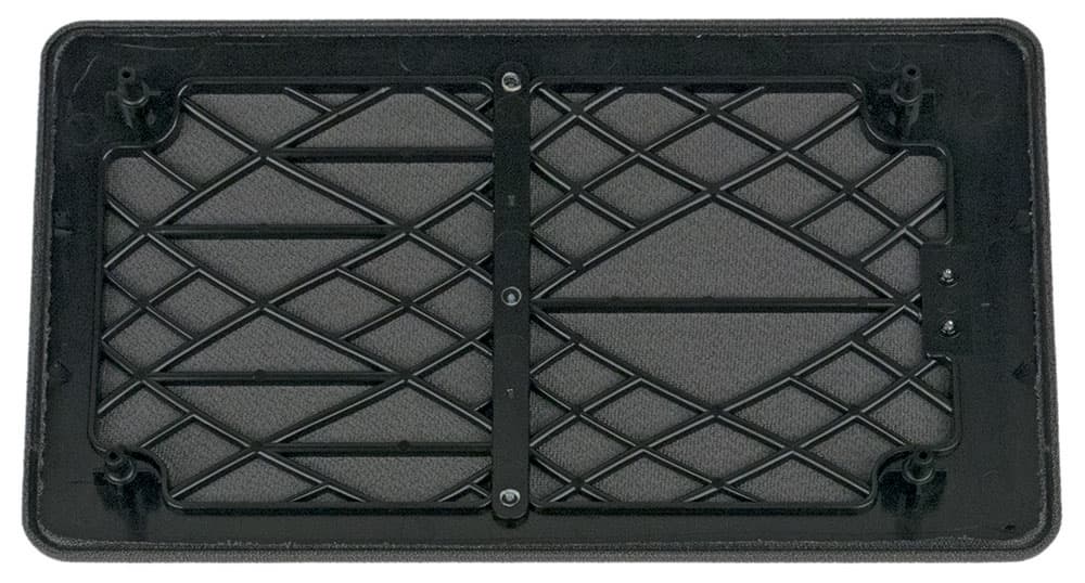 Снаружи фронтальная панель имеет съемный гриль из неплотной ткани на пластиковой решетке со скругленными углами, слегка изогнутой в горизонтальной плоскости. Цвет ткани серый, немного светлее, чем покрытие лицевой и верхней панелей, а в середине закреплена тонкая серебристая полоска, как бы перечеркивающая поверхность. Устанавливается гриль с небольшим зазором, облегчающим снятие, а крепится четырьмя довольно прочными штырьками, входящими в отверстия передней панели.