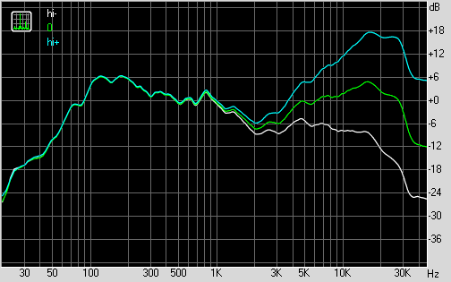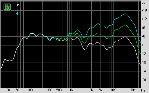 Графики АЧХ колонки Edifier R2000T, измеренные при разных положениях регулятора ВЧ