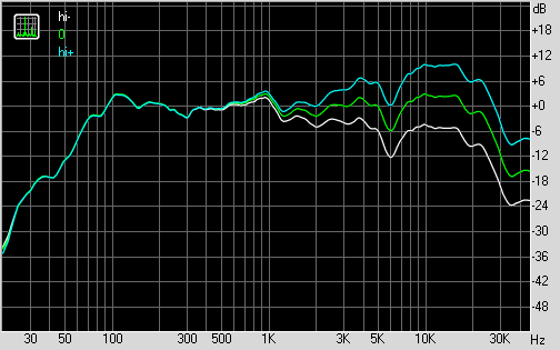 Графики АЧХ колонки Microlab Solo 5C, измеренные при разных положениях регулятора ВЧ