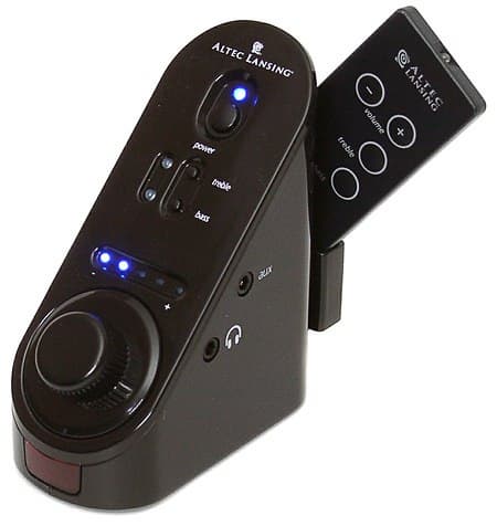 Наличие в подобных наборах различный блоков управления и пультов ДУ лицезреть очень приятно. В Altec Lansing MX-5021 их даже два.