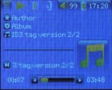Во время самого воспроизведения на экране отображается имя артиста, название альбома, название трека, обложка альбома. Если обложки в теге не обнаруживается, в месте ее возможного нахождения отображается рисунок с нотками. Разумеется, присутствует прогресс-бар, справа и слева от которого отображается также прошедшее и оставшееся время для текущего трека.